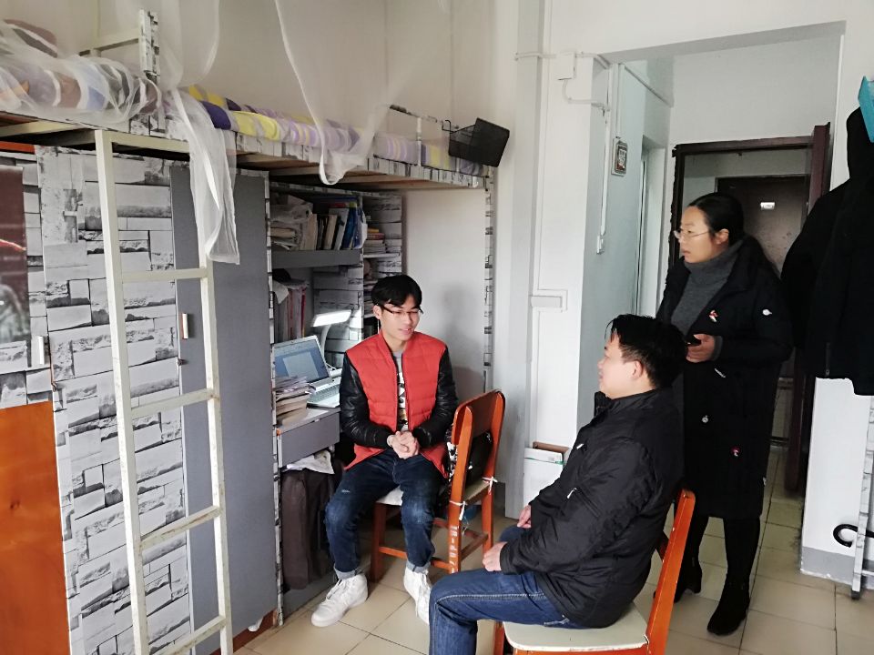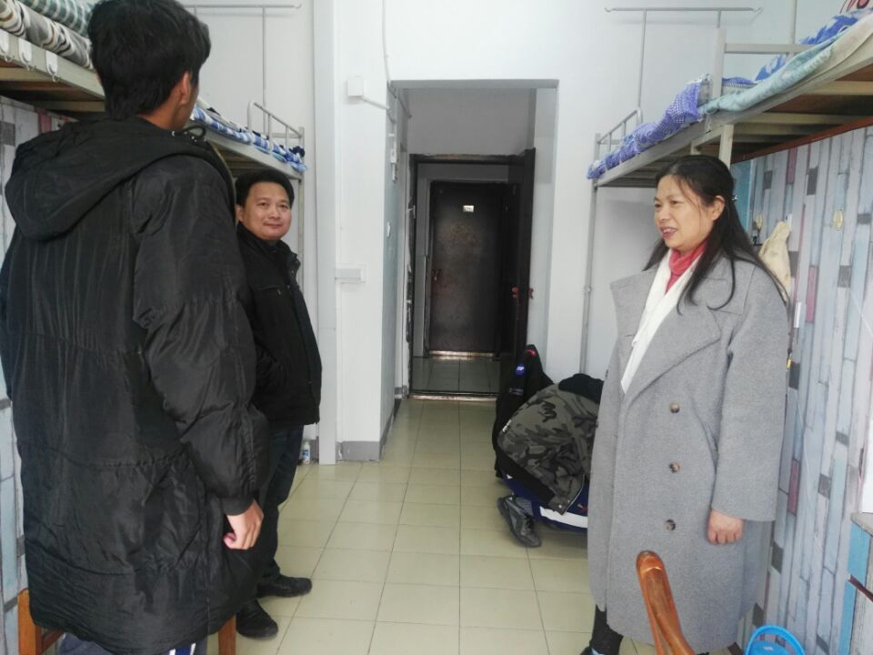 12月20日,学院党委书记樊敏、院长李伟、党委副书记凡蓉蓉与辅导员胡子英、王娟娟、谈鹏一行深入学生宿舍开展宿舍安全检查。