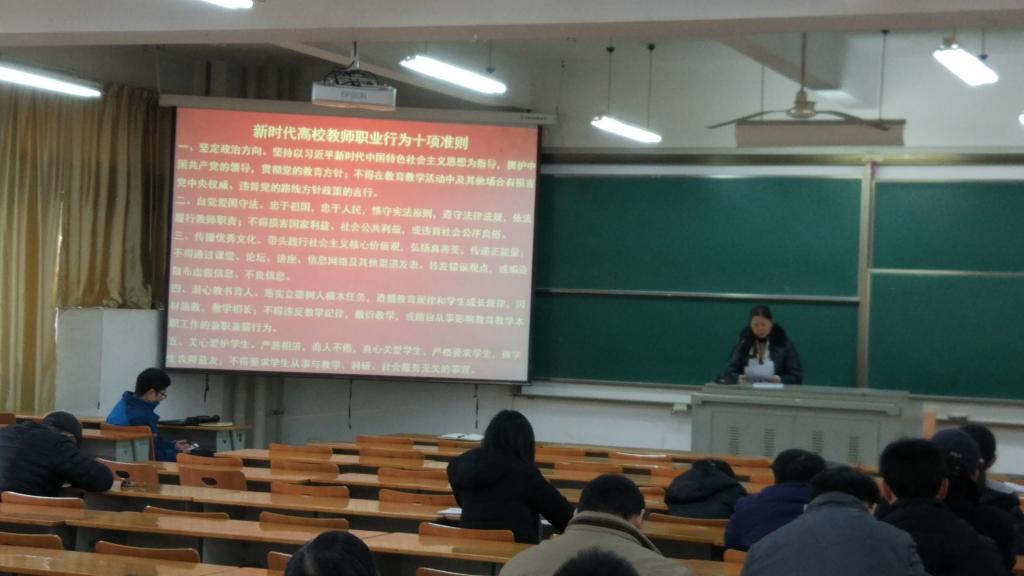 12月13日上午,化学与化工学院党委中心组和各支部书记专题学习《新时代高校教师职业行为十项准则》、《教育部关于高校教师师德失范行为处理的指导意见》。会议由党委书记樊敏主持。