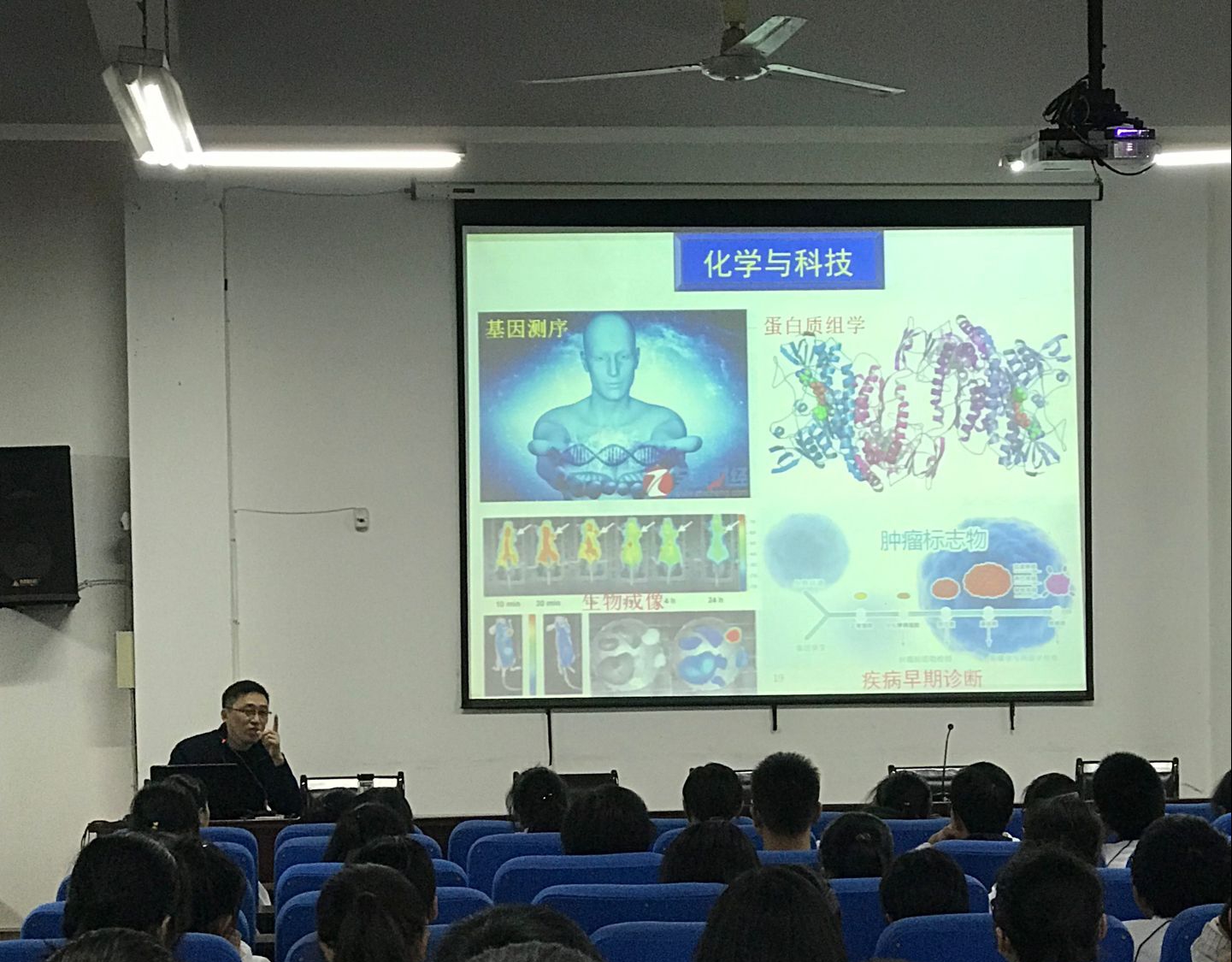 随后何池洋教授为安陆一中师生带来了《魅力化学为你打call》的精彩讲座。何池洋教授从化学与诺贝尔、院士说化学、化学作用、我的化学之路、学生就业发展以及最新的化学化工前沿等六个方面展开讲座。何教授凭借丰富的学科知识,结合自身经历和研究工作,以通俗易懂的语言为同学们科普了化学与人类衣食住行、健康、国防、科技、体育等领域的关系。也将最新的化学化工科技介绍给同学们,让大家充分认识到化学等各个领域的伟大贡献,极大地激发了同学们对化学化工专业的认识与热情。何教授也与现场的学生进行了互动,讲座现场气氛热烈,参加讲座的同学们对化学化工专业表现出极大的兴趣,纷纷表示此次讲座使他们改变了对化学化工的认识,了解化学学科和化工技术的大好前景。