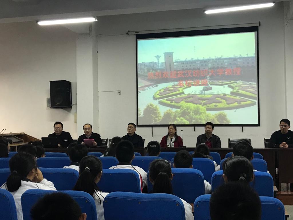 学院樊敏书记就武汉纺织大学和化工学院的办学历史、办学特色、师资力量、人才培养以及近几年招生录取情况等方面进行了简要的介绍。夏明桂教授与教师和学生代表交流了自身学习和成长的体会,并勉励高一学子认真求学,珍惜韶华。