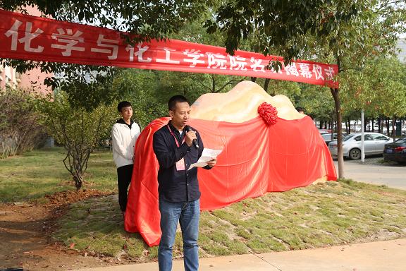 10月18日上午9时,化学与化工学院院名石揭幕仪式在阳光校区理工楼前隆重举行,院名石由染871、872班校友集体捐赠。校党委常委、副校长姜明华教授、院党委书记樊敏出席了揭幕仪式,仪式由院长李伟主持。返校校友、学院各教研室主任、骨干教师、学生代表等参加了揭幕仪式,学院并在校友微信群中对揭幕仪式进行了现场直播,使众多未能返校的校友共同分享这一喜悦。