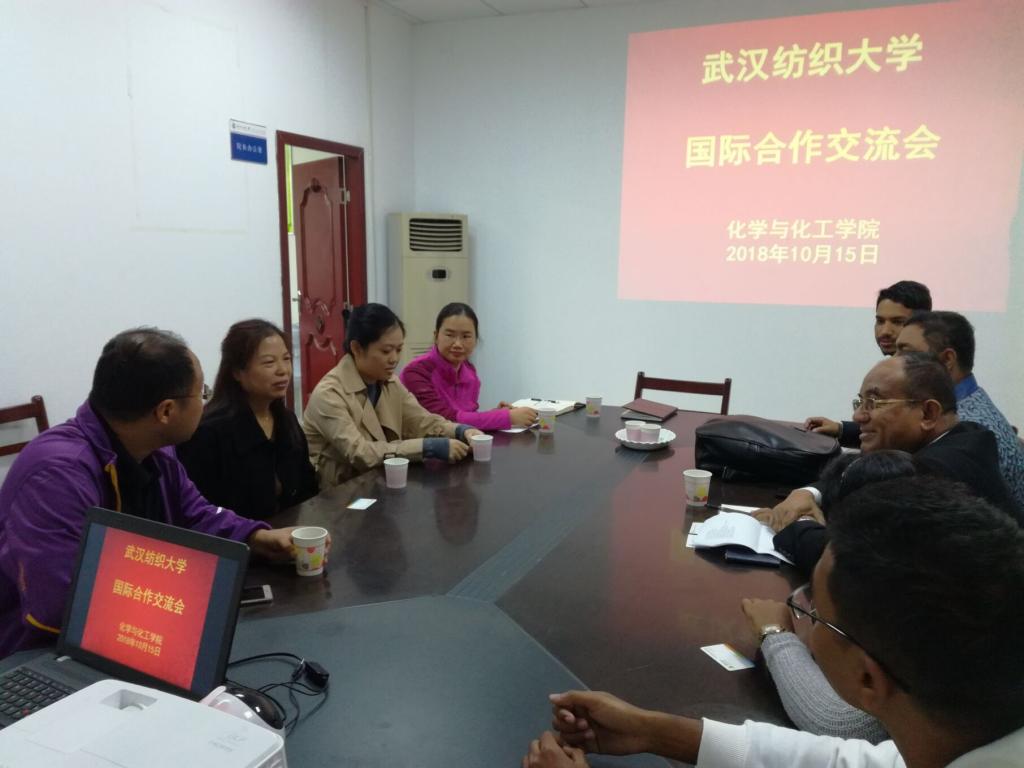 2018年10月15日上午,孟加拉绿色大学副校长Md.Golam Samdani Fakir 教授来化学与化工学院访问交流。化学与化工学院党委书记樊敏、学院权衡教授、崔莉教授、黎谦副教授等相关专业老师和部分在我院学习的孟加拉留学生参与了交流会。
