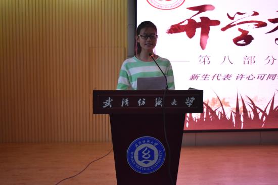 随后,我院老生和新生代表先后上台发言,15级学生代表裴晓姗交流大学学习经验,分享大学生活感想,同时表达了对学院和老师栽培的感谢。18级新生代表许心可畅谈自己心中的大学,感谢学院自入学以来的悉心照顾。