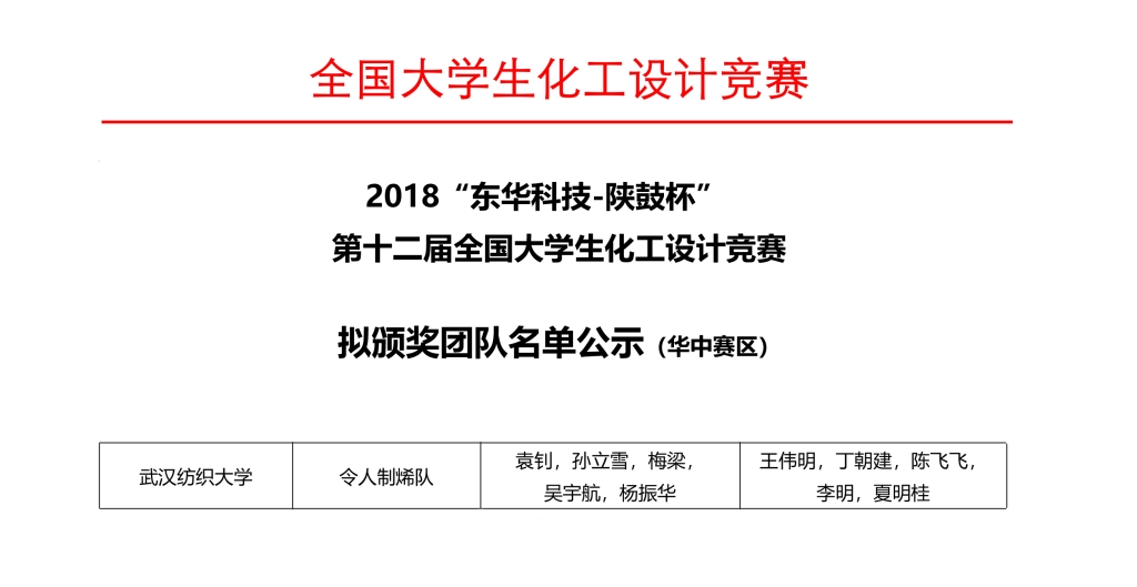 暑假期间,华中大学生化工设计竞赛暨第十二届全国大学生化工设计竞赛华中赛区决赛,在湖北省宜昌市三峡大学举行。华中赛区包括湖北省、河南省、江西省和安徽省的52所高校参与。经过激烈角逐,我院师生团队代表学校在第十二届全国大学生化工设计竞赛华中赛区中获佳绩。