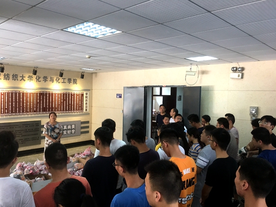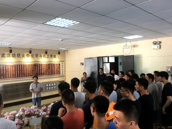 7月29日,化学与化工学院党委书记樊敏、院长李伟、工会主席李卫东、副院长李明、姜会钰、副书记凡蓉蓉、办公室人员及辅导员来到理工楼看望暑期留校考研、开展科研实验的本科生、研究生和留学生同学们,并为大家送去了牛奶、饮料等降温慰问品。