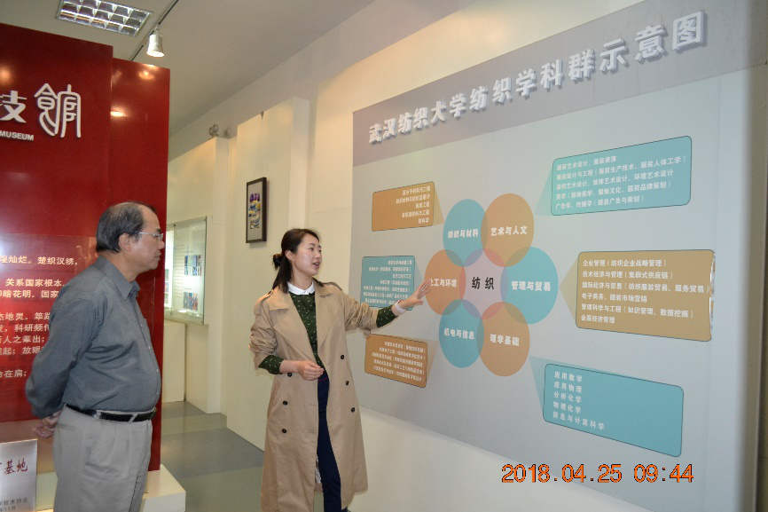交流访问期间,米院士作为宋朝书画家米芾的后代,还饶有兴趣地参观了湖北省非物质文化遗产研究中心(武汉纺织大学),听取了汉绣的历史、发展现状和汉绣的工艺特点。相信本次学术访问为米院士与我校的进一步合作打下了良好基础。