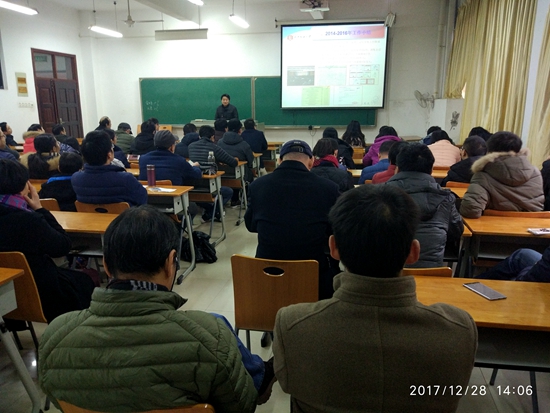 李伟院长代表学院领导班子梳理了2014-2016年的整体工作概况,重点汇报了2017年各项工作取得的成绩和不足,报告了班子成员的述职述廉情况,学校考核组来院组织教职工对领导班子和个人进行了民主测评。