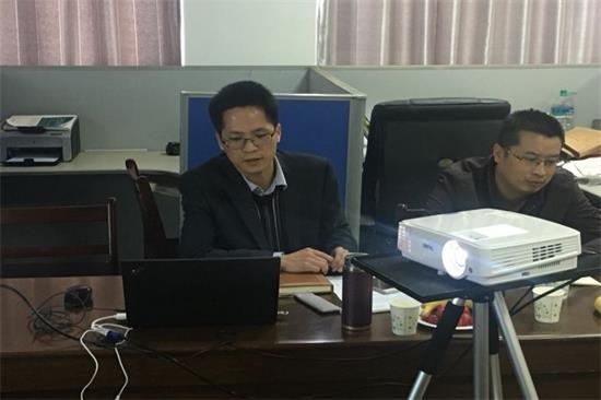 紧接着,熊俊博士的报告着重讲解他的研究方向--大环冠醚基超分子陀螺的设计合成及其铁电极性能研究,老师们听取之后积极提问,熊俊老师一一解答并向各位老师征求意见和建议。