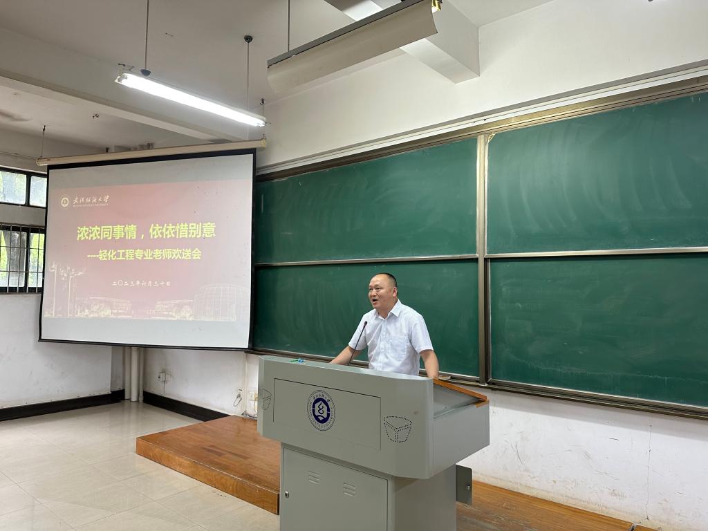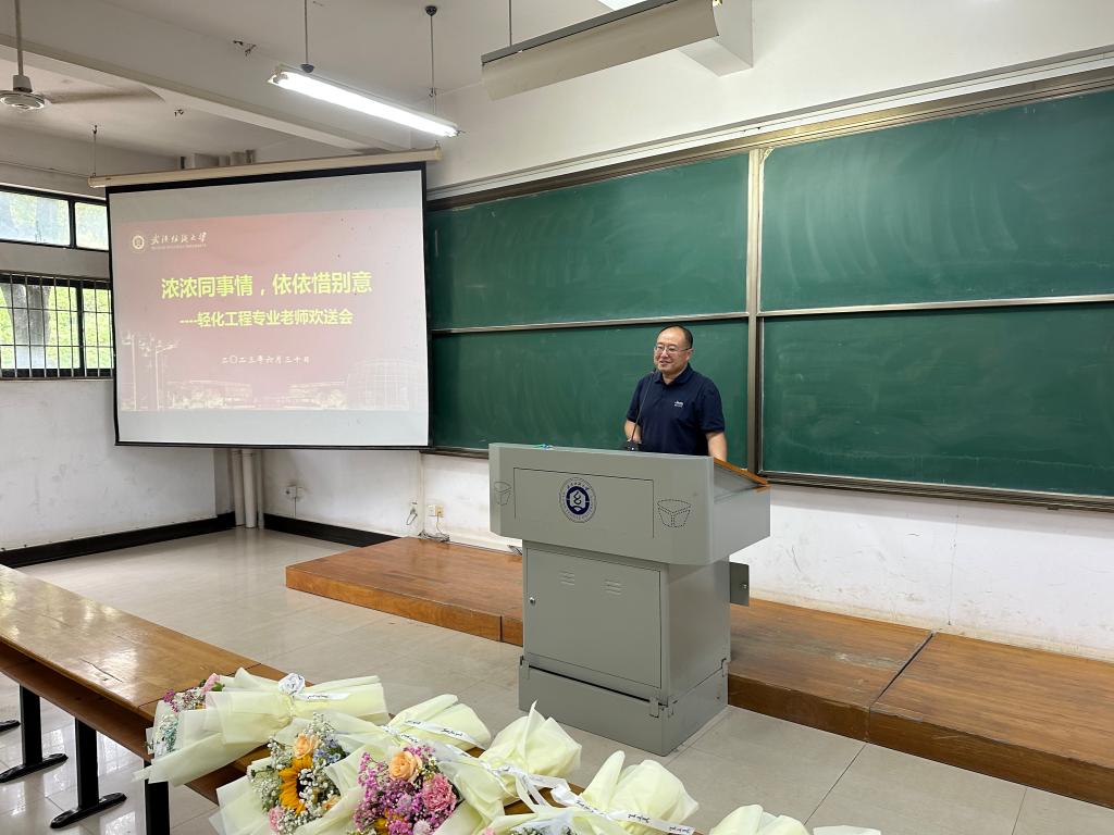 朱君江表达了对调离教师辛勤工作的感谢和祝福,高度赞扬了老师们在平凡的岗位上做出了不平凡的业绩,老师们默默无闻奉献智慧,孜孜不倦耕耘心田,为化工学院留下了宝贵的财富。他与在场老师们分享了多年来轻化工程专业一起奋斗的美好点滴与珍贵的记忆,教师们共同工作、朝夕相处,历历在目,每一个点滴细节都让人倍感温暖。