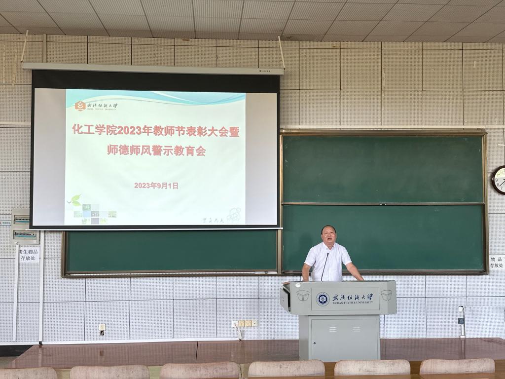 9月1日下午,化工学院在崇德楼T102教室召开2023年教师节表彰大会暨师德师风警示教育会。学院全体教职工参加,院党委书记杜勇主持会议。