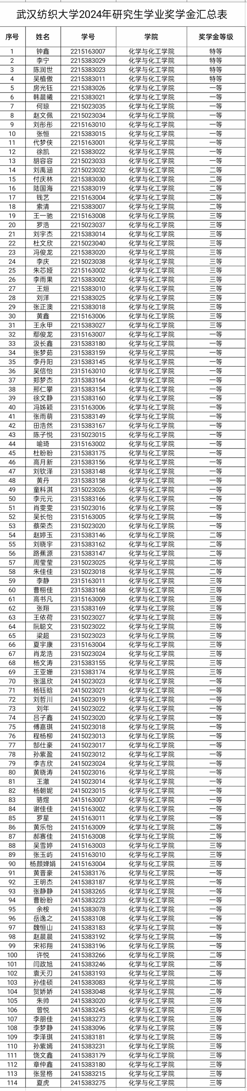 根据研究生处《关于做好2023-2024学年研究生学业奖学金评定工作的通知》要求,评定结果公示如下: