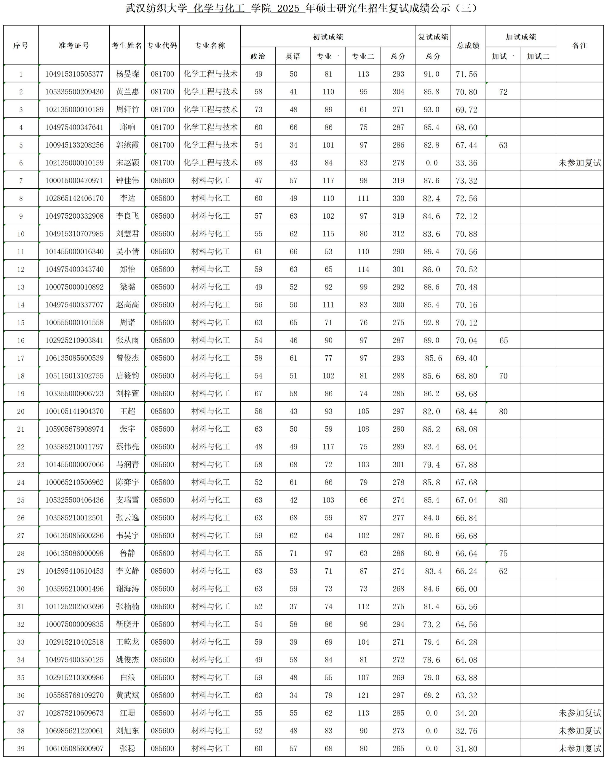 下一篇:武汉纺织大学化学与化工学院2025年硕士研究生招生复试成绩公示(二)