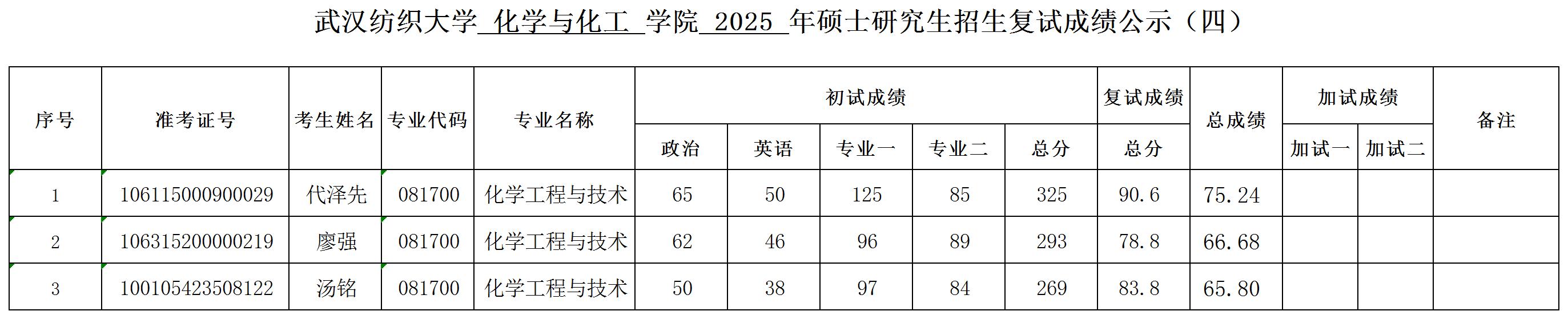 下一篇:武汉纺织大学化学与化工学院2025年硕士研究生招生复试成绩公示(三)