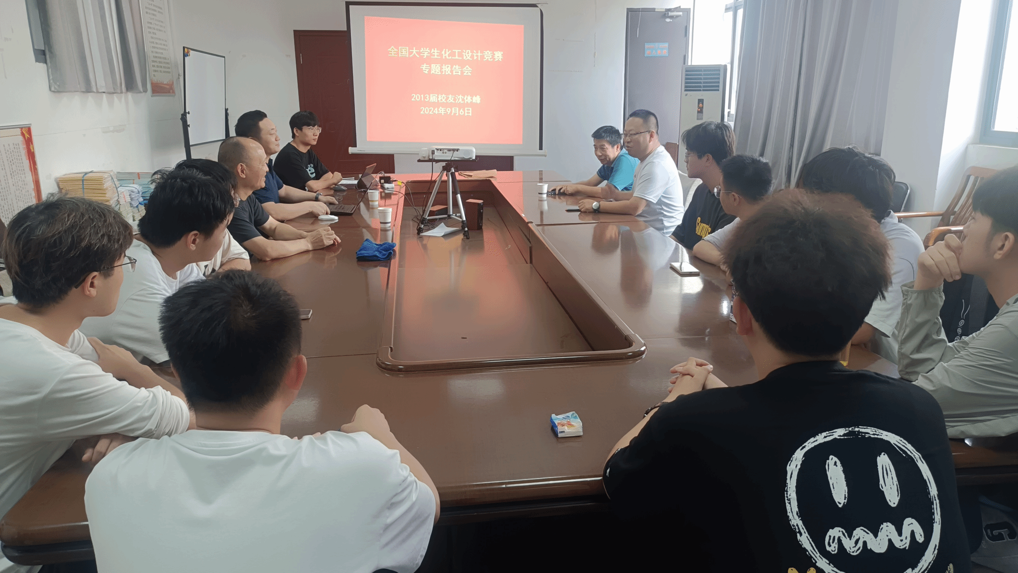 2024年9月6日上午,化学与化工学院在崇礼楼205会议室举办全国大学生化工设计竞赛专题讲座,13届校友现中控技术股份有限公司模拟优化业务部总经理沈体峰针对化工设计模拟软件的开发及应用做了精彩报告。本次专题讲座由化学与化工学院副院长陈飞飞主持,学院党委书记杜勇、副书记莫德辉、教师代表、部分化学工程与工艺专业本科生等20余人参会。