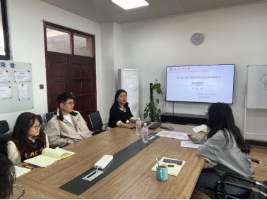 刘凯思介绍了关于氧化物表面构建受阻的路易斯酸碱对理论计算设计与实验方面的联系。陈亚诗主要介绍了在表界面调控对电极材料的电化学性能影响的理论计算及实验研究。报告结束后与会师生积极提问,汇报人逐一进行解答,学术氛围浓郁。