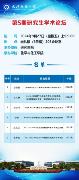 胡蓉蓉深入阐述“氮化碳活化高锰酸钾降解有机污染物的研究”;赵文佩围绕 “Mn(Ⅱ)-次氮基三乙酸配合物活化亚硫酸盐高效降解磺胺嘧啶:亚硫酸盐的高效利用”展开探讨。周小川、李静、赵上艺、张梦茹分别就“TiO2作为Lewis酸活化高锰酸盐降解左氧氟沙星”“Mn2+/邻菲啰啉活化亚硫酸钠降解有机物污染物”“Mn(III)-TCPP活化亚硫酸钠降解有机物污染物”以及“Fe2O3@Al2O3活化 PMS 降解左氧氟沙星的研究”等主题,展示他们的科研成果。