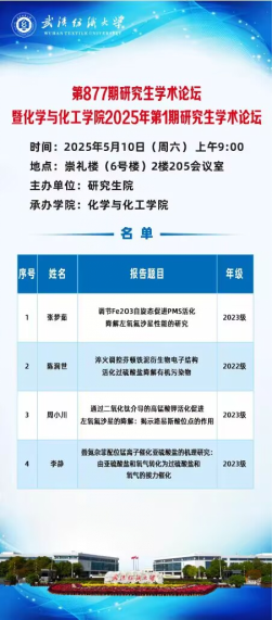 5月10日上午,化学与化工学院在崇礼楼205会议室举办了第877期研究生学术论坛暨化学与化工学院2025年第1期研究生学术论坛。化工学院研究生张梦茹、陈润世、周小川和李静受邀做学术报告。学院师生代表等30余人参与本次学术论坛。
