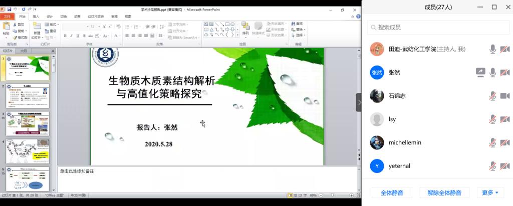 为了进一步加强疫情防控常态化期间的学术交流,促进老师们更积极地开展科研工作,化工学院充分利用网络平台开展学术沙龙活动。5月28日,化工学院2020年第三期学术沙龙活动在腾讯会议室线上举行。2019年新进青年教师张然博士分享了她的科研成果,学院青年教师共27人参加了此次线上交流活动。