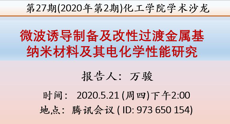 为了在疫情期间更好地开展科研交流合作工作,化学与化工学院充分利用网络平台开展了系列学术沙龙活动。5月21日,化工学院2020年第2期学术沙龙活动在腾讯会议线上举行。2019年新进青年教师万骏博士分享了他的科研成果,学院青年教师共25人参加了此次线上交流活动。