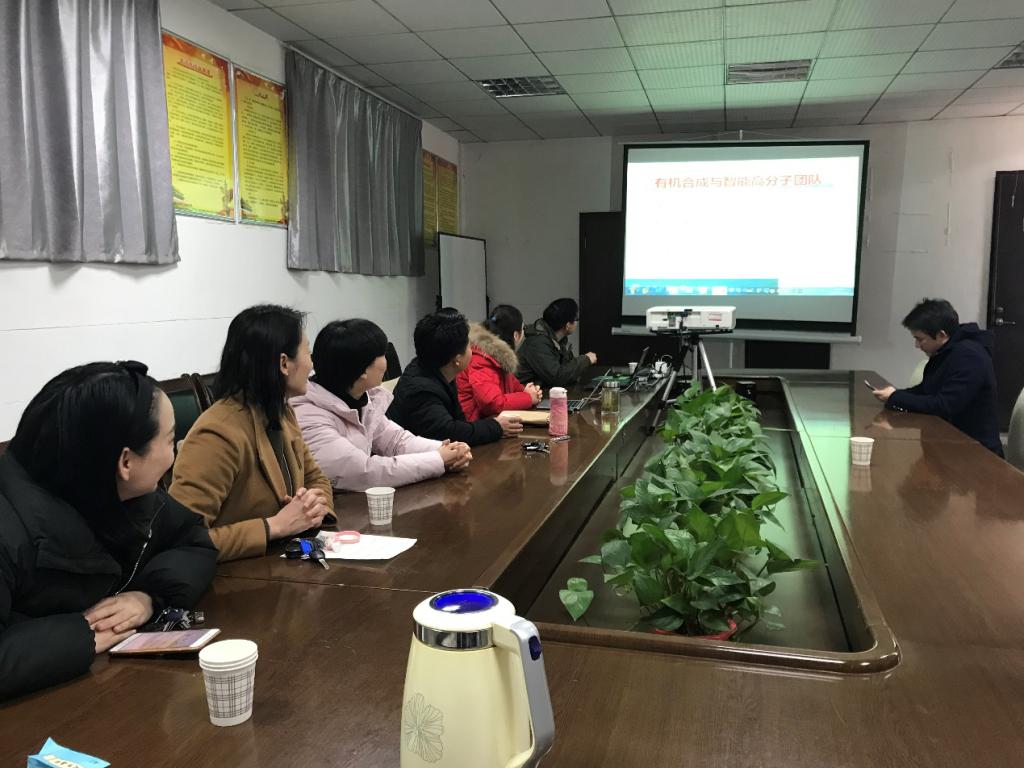 11月28日下午,化工学院第七期学术沙龙活动在学术会议室6-204C举行。杨永生教授团队进行了团队学术分享。杨永生教授介绍了团队组成成员,研究方向,并深入介绍了其在绿色有机合成与智能高分子领域的最新研究进展。团队成员琚海燕副教授介绍了她在胶原纤维的生物学利用领域的研究。随后参会的青年老师与团队成员之间展开了热烈的讨论,姚金波教授给予了团队建设性建议,青年教师田迪与团队成员进行了深入的学术交流与探讨。