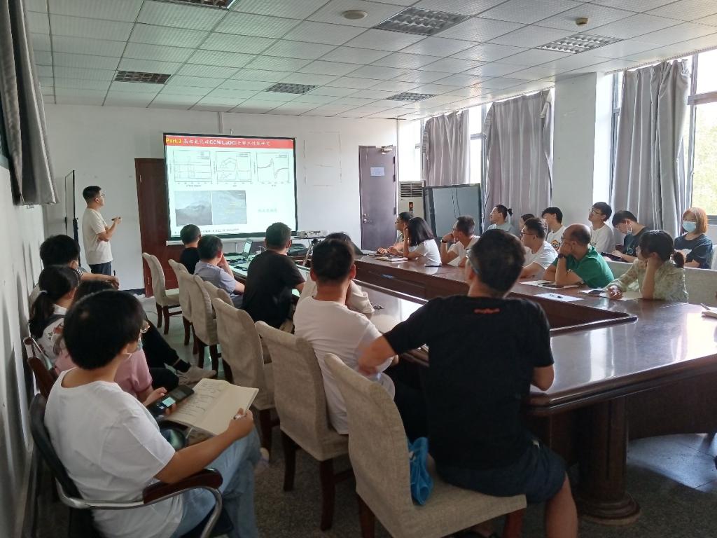 林元博士在本次报告中主要介绍了聚合物氮化碳(PCN)以及异质结PCN/LaOCl相关的可见光吸收材料的全解水性能研究。报告详细讲述了根据表面改性PCN,改变结晶度来探究其载流子分离和迁移能力。张健华博士则介绍了微纳米马达的驱动机制、运动效率、运动行为、运动条件以及相互作用机制。详细阐述了通过光热迁移探究微纳米马达的集群化。报告结束后,林元博士与张健华博士对学院师生的问题一一解答,参会师生对精彩学术报告表示诚挚的感谢。