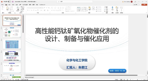 朱君江教授做了题目为“高性能钙钛矿氧化物催化剂的设计、制备与催化应用”的报告。探讨了高性能钙钛矿催化剂的制备策略。这是一个非常重要的课题,在提高化学工业生产效率方面具有重大意义。朱教授以其丰富的知识和研究经验,为听众展示了钙钛矿氧化物催化剂的最新研究进展。