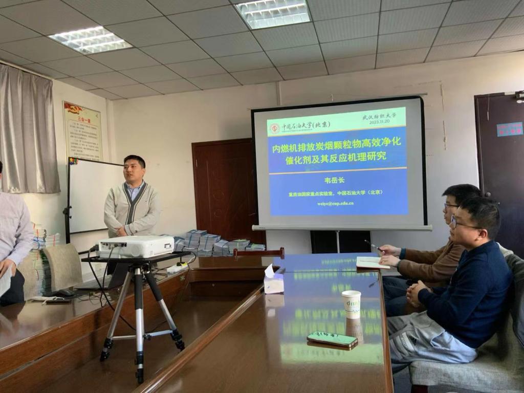 孙旭平教授介绍了纳米功能材料的设计、调控及催化与传感应用研究。韦岳长教授基于内燃机尾气净化、催化CH4转化、光催化CO2还原三个研究方向,介绍了创新多孔催化剂的制备与研发。吕来教授提出了双反应中心净化技术原理,解决由金属还原带来的芬顿反应瓶颈问题。会议结束后,报告人回答了师生们提出的问题。