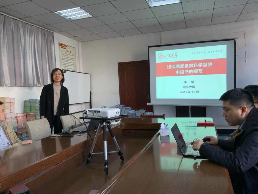 李倩教授介绍了国家自然科学基金申请书撰写需要重点注意的问题,阐述了立题依据、研究内容、研究方案、关键科学问题、可行性分析和研究基础等方面的撰写技巧,并分享了其在国家自然科学基金申报过程中的体会。报告结束后,李教授解答了青年教师提出的问题。