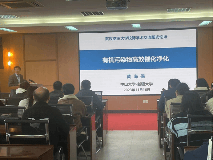 2023年11月16日上午,环境有机污染物高效催化净化会议在阳光校区崇礼楼楼310会议室成功举办。本次会议由化学与化工学院与先进纺纱织造及清洁生产国家地方联合工程实验室联合主办。本次论坛上,教育部长江学者——中山大学黄海保教授、国家级青年人才——西安交通大学何炽教授作了精彩报告。论坛由化工学院院长朱君江教授主持,学院教师、研究生及本科生代表50余人积极参加。