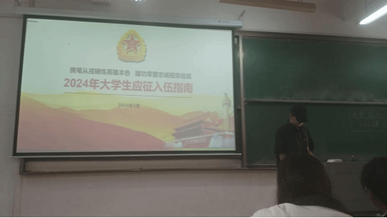化工学院2021级本科生黄路翰作为学生征兵宣讲员,以自身入伍动机、入伍经历、入伍感受等内容,为学生们提供全方位的信息和机会,深入了解参军的先决条件和职责要求。学院征兵联络员、2022级本科生辅导员程文杰则深入介绍了入伍待遇、入伍条件、入伍流程环节,普及入伍常识。就入伍与考研考公的相关政策进行专门解读。