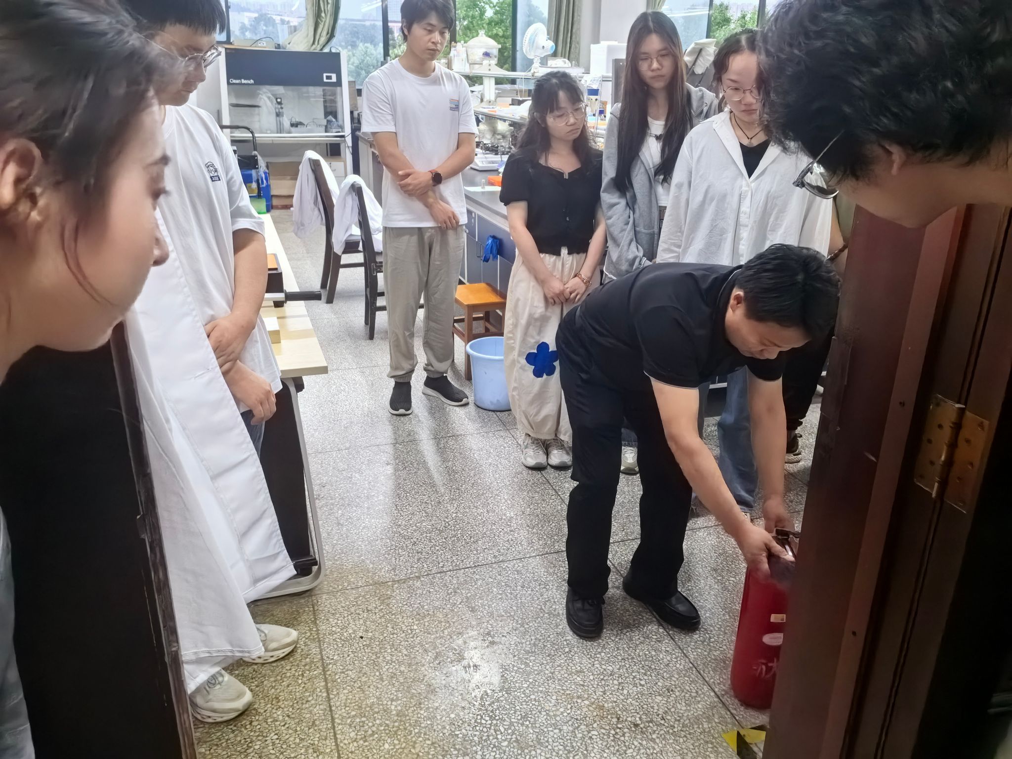 为了切实增强研究生们的安全防范意识并提升他们的应急处理能力,5月15日下午,化工学院研究生导师李伟教授精心组织了一场专题安全教育活动,并进行了生动的现场演示操作。