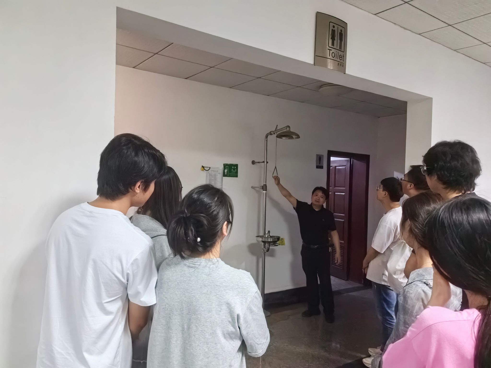 在活动中,李伟教授首先以深厚的专业素养和丰富的实践经验,通过系统的理论讲解,引领研究生们全面、深入地了解安全操作的各个环节和流程。随后,他更是亲自上阵,通过生动直观的现场演示,展示了实验室中各种急救装置的正确使用方法和技巧。演示现场导师们与研究生们产生了有趣的互动和幽默的交流,拉近了导师与学生之间的距离。