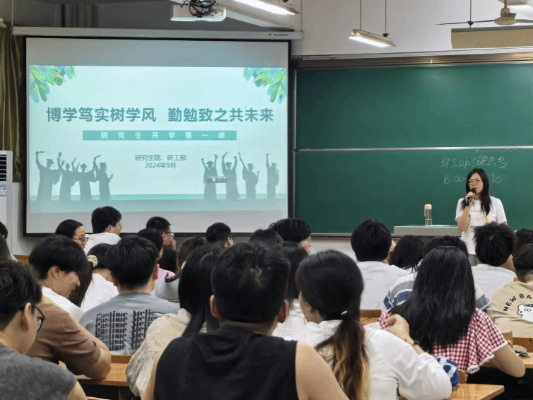 研究生辅导员张婧杰跟大家一起重温了学生管理规定,深化大家的规矩意识,随后从“安全教育”“学风建设”“职业生涯规划”“开学心理调适”等方面为研究生们上好“开学第一课”。并带领大家深入学习领会党的二十届三中全会精神,深刻理解党的一系列新概念、新观点、新论断。最后带领大家一起观看央视开学第一课,感受大好河山的震撼、领略校长徐卫林院士的风采。研究生们纷纷表示何其有幸,与有荣焉,自己要坚定理想信念,练就过硬本领、自觉担当尽责,立志将专业所学用于国家所需、时代所需。