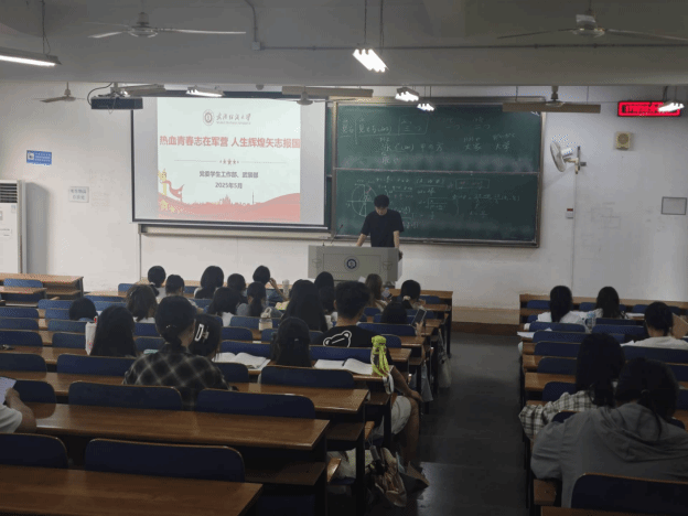 为积极响应国家号召,扎实推进2025年秋季征兵工作,化工学院于5月9日晚点名班会时间,在全院范围内集中开展了以“热血青春志在军营,人生辉煌矢志报国”为主题的征兵宣传“三个一”活动。此次活动通过主题班会、政策宣讲、朋辈交流三种形式,将征兵宣传工作深入课堂、班级和宿舍,切实增强了学生应征入伍的思想自觉和行动自觉。