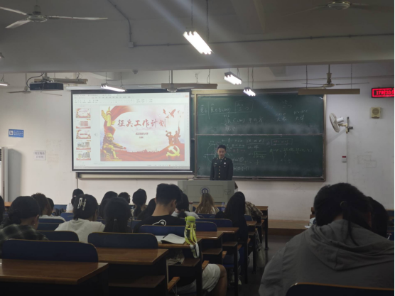 本次宣讲活动围绕“热血青春志在军营,人生辉煌矢志报国”主题,学院征兵联络老师程文杰通过生动的案例、感人的故事,引导学生深刻理解投身国防事业的重要意义。分享以武装部提供的PPT为基础,详细解读了国家征兵政策、报名条件、福利待遇以及退役后的就业优势等内容。学院征兵联络员强调,大学生应征入伍不仅是履行国防义务的重要体现,更是锻炼意志、提升自我的宝贵机会。