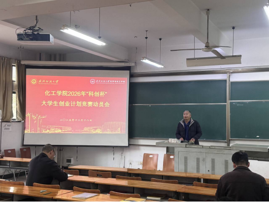 为积极响应学校号召,深入贯彻落实党的二十大精神,进一步激发大学生创新精神,培育创业意识,12月18日,化工学院组织举办了2026年武汉纺织大学“科创杯”大学生创业计划竞赛专题宣讲会。本次宣讲会面向学院全体教师和学生,详细介绍了赛事相关情况及竞赛要求,并就计划书撰写等方面对参赛选手进行了系统指导与培训。