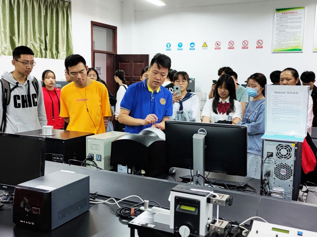 学院制定了详细的参观计划和参观路线,副院长李明、实验室主任张艳波、实验室副主任涂超、倪丽杰老师,作为带队老师,负责具体的讲解和指导。在参观的过程中,还有实验室杜勇老师简要介绍了化工单元操作的种类和功能,李玉广教授介绍了他正在进行的研究项目和实验进程,正在做实验的研究生给新生们介绍了高压液相色谱的分离原理和操作方法……学生们满怀好奇和激动,分别参观了生物质纤维与生态染整湖北省重点实验室和纺织印染国家级教学示范中心,仔细观看各种实验仪器和设备,认真听老师和学长学姐的讲解,对即将开始的实验室学习有了更为直观的感受和了解。