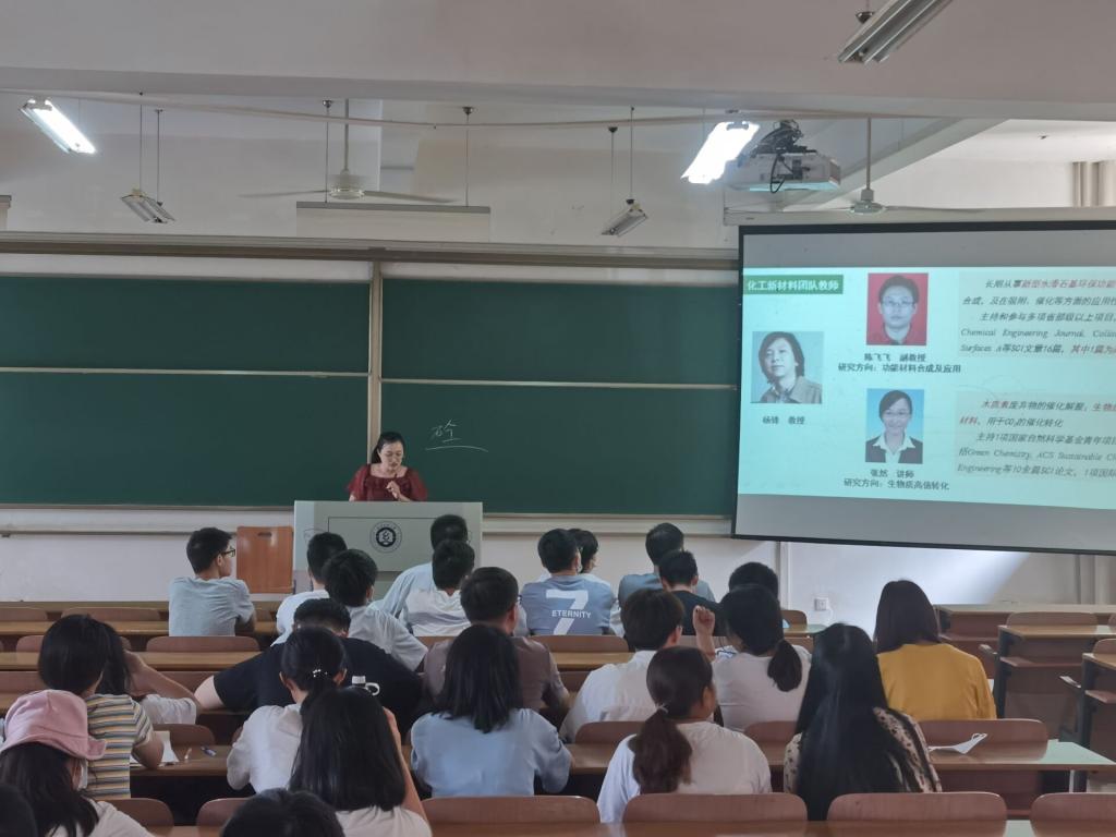 轻化工程系姜会钰副教授,化工系陈飞飞系主任、夏明桂教授、朱君江教授、李晓霞教授 、张然博士,应化系何池洋教授、王强教授、刘丽君副教授、于志财副教授等,分别和同学们深入交流各专业的就业方向、就业领域、就业前景等。通过数据对比列举近几年考研学生报考情况,考研学生结构组成情况,并详细介绍了学院各学科的基本情况、师资力量、人才培养模式和定位、研究生升学就业前景等等,用深入浅出的话语,介绍每一个学科具体“学什么”、“将来做什么”,通过具体事例列举目前在读的和已经就业的研究生取得的成就和就业情况。