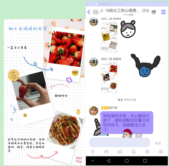 同学们纷纷在群里把自己的劳动成员进行了“晾晒”,有的是喷香的玉米汤,有的是番茄炒蛋的家常小菜,有在是网上很火的电饭煲蛋糕,还有炒年糕等等......有的同学甚至晒出了自己制作的小视频与大家分享做菜心得;有的同学表示做完饭后看到父母惊讶的眼神,心中满满都是得意与欢喜;还有的同学表示,疫情最严重的时候,全国各地美食都在为武汉热干面加油的漫画、视频走红网络,他的居家美食,也是宅家贡献。
