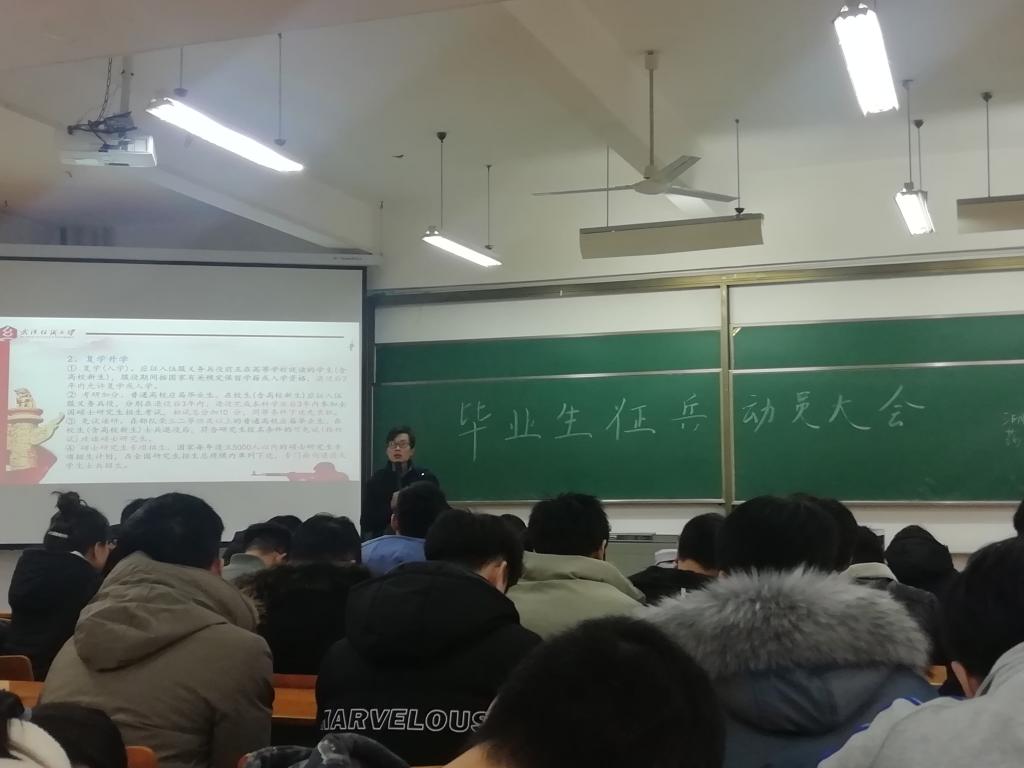 为进一步加强大学生应征入伍政策的宣传教育力度,激发毕业生参军热情。12月30日,学院征兵联络员谈鹏老师组织召开2020届毕业生征兵动员大会,学院全体毕业生参加。