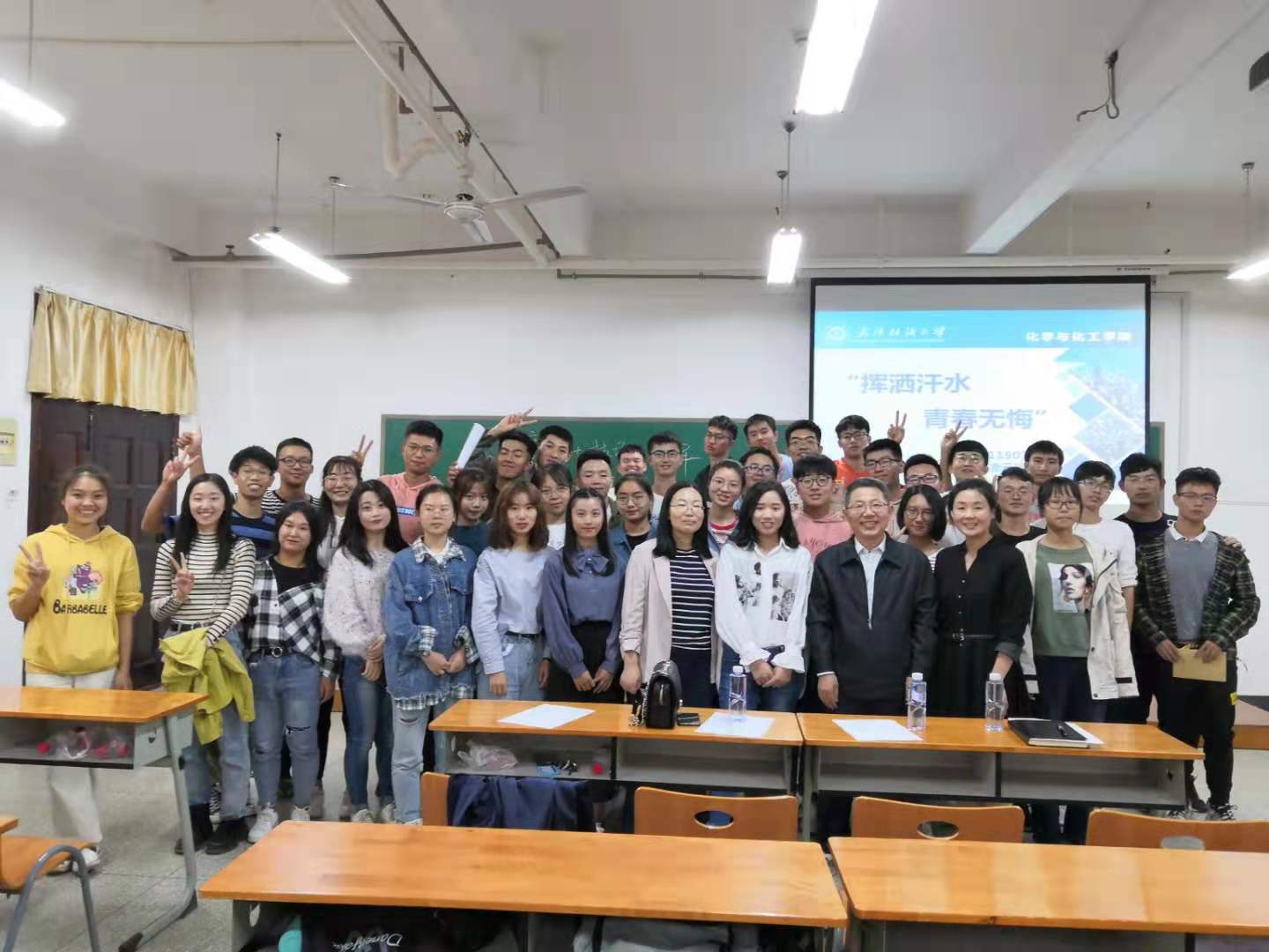 10月13日晚7点,校党委常委、副校长唐敏来到化工学院,参加结对班级化学类11907班“挥洒汗水 青春无悔”主题班会。