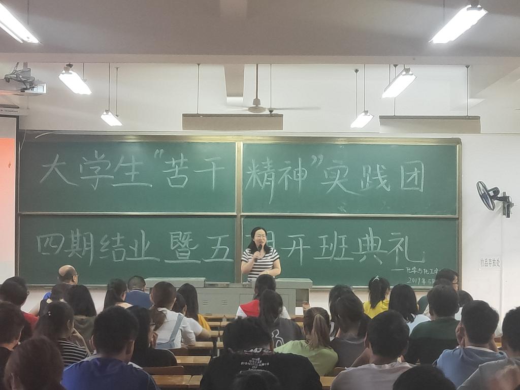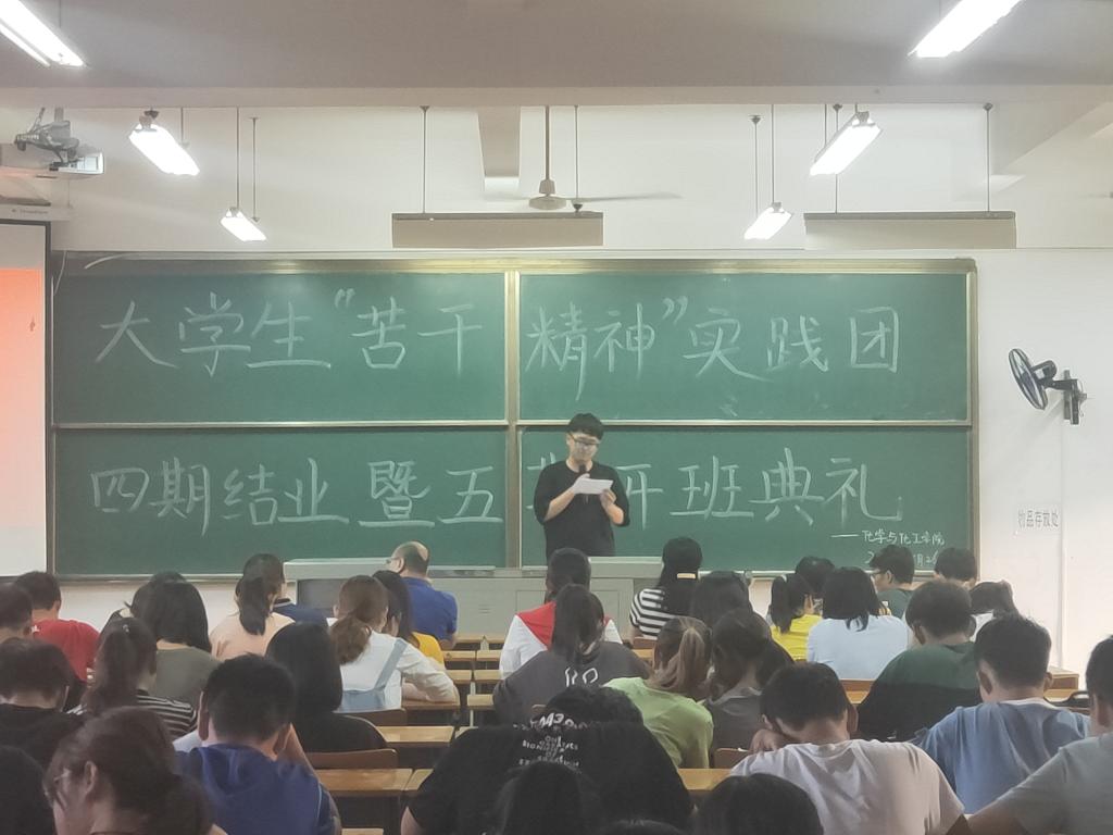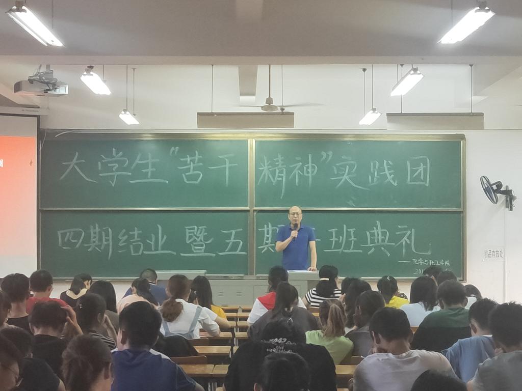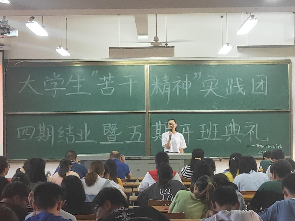 近期,化工学院于崇礼楼举办大学生“苦干精神”实践团四期结业暨五期开班典礼。学院党委副书记凡老师,苦干团指导老师王娟娟,团委书记谈老师以及18级班主任于志财、李永强老师代出席本次典礼。