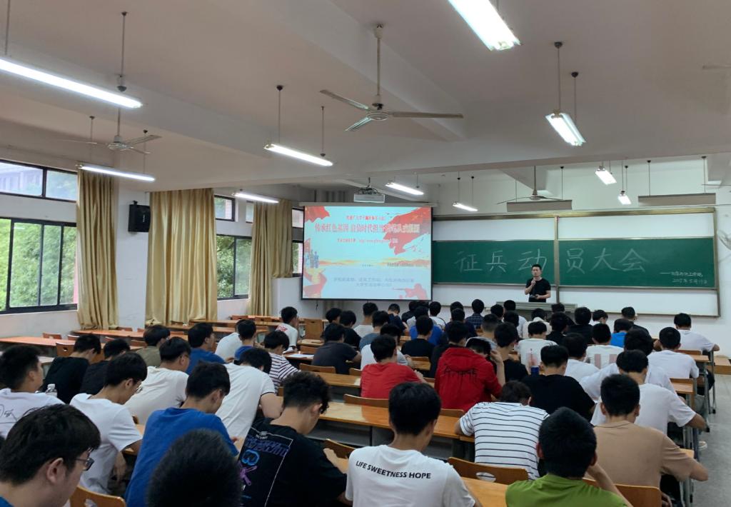 为鼓舞青年学子携笔从戎,营造浓厚的大学生征兵宣传工作氛围,充分激发广大适龄青年大学生踊跃报名参军的热情。5月19日,化工学院于崇礼楼210开展征兵动员大会,本次大会由学校武装部魏守台老师主讲,化工学院全体男生参加。