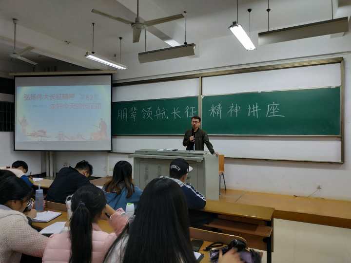 11月14日下午,化工学院于六栋教学楼展开 “朋辈领航长征精神讲座”,重温长征精神,学习先辈艰苦奋斗精神。本次讲座由学院学生会主席宋小林主讲。