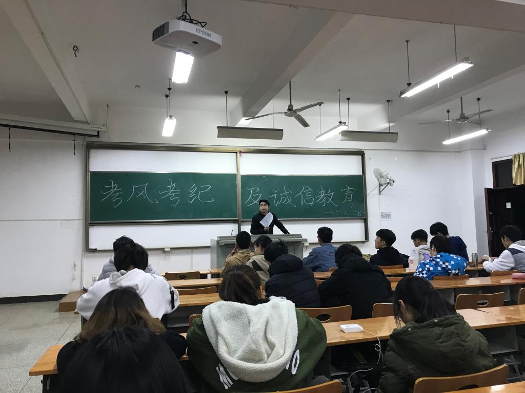 诚实做人,诚信应考。时近期末,学院开展此次主题教育活动,旨在进一步加强考风考纪及诚信教育。活动伊始,各位老师就教务处《关于加强期末考试管理的通知》向同学们进行说明,希望同学们能够遵守相关规定,做好应考准备,严肃考风考纪。随后,各位老师就学生管理规定关于考试作弊的相应处分条例,再次向同学们做出讲解和宣传,提醒同学们在考试过程一旦发现违纪行为,相关部门将对当事人严肃处理。