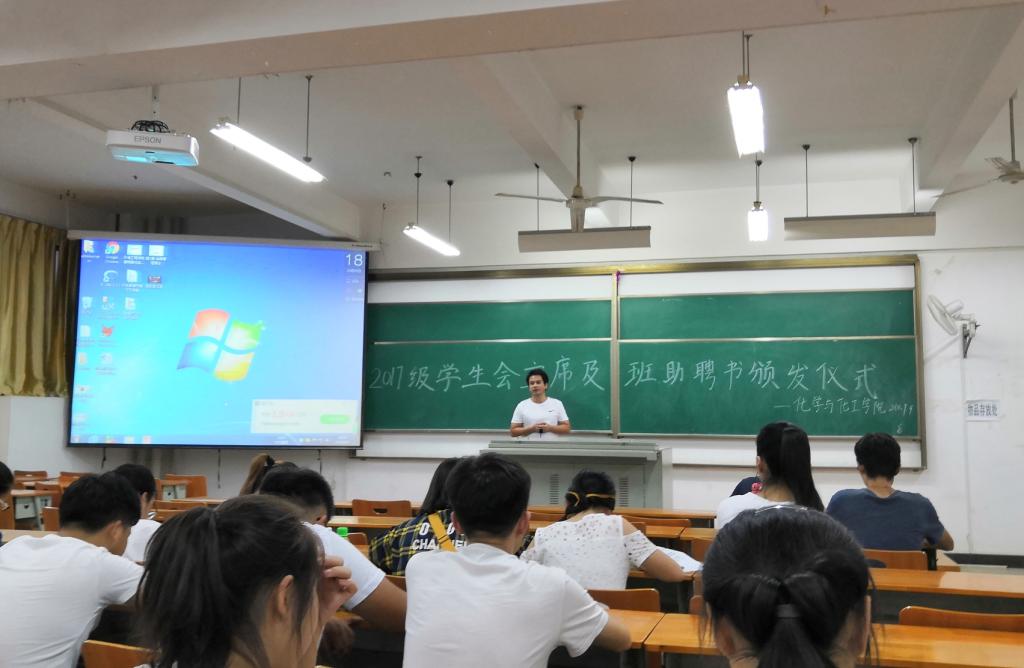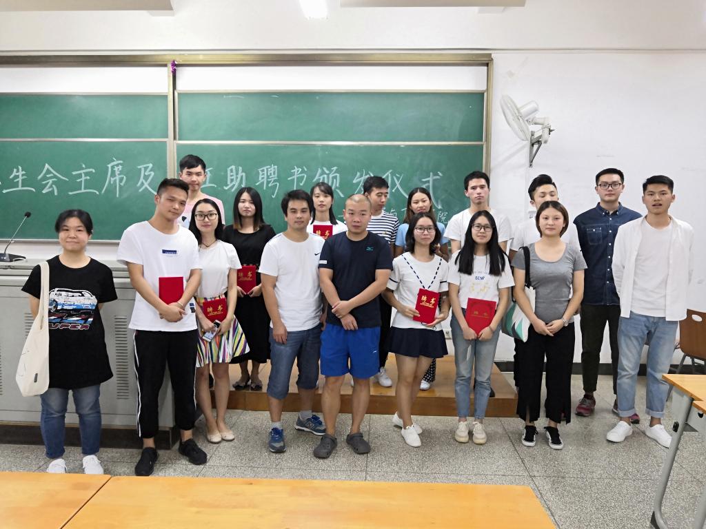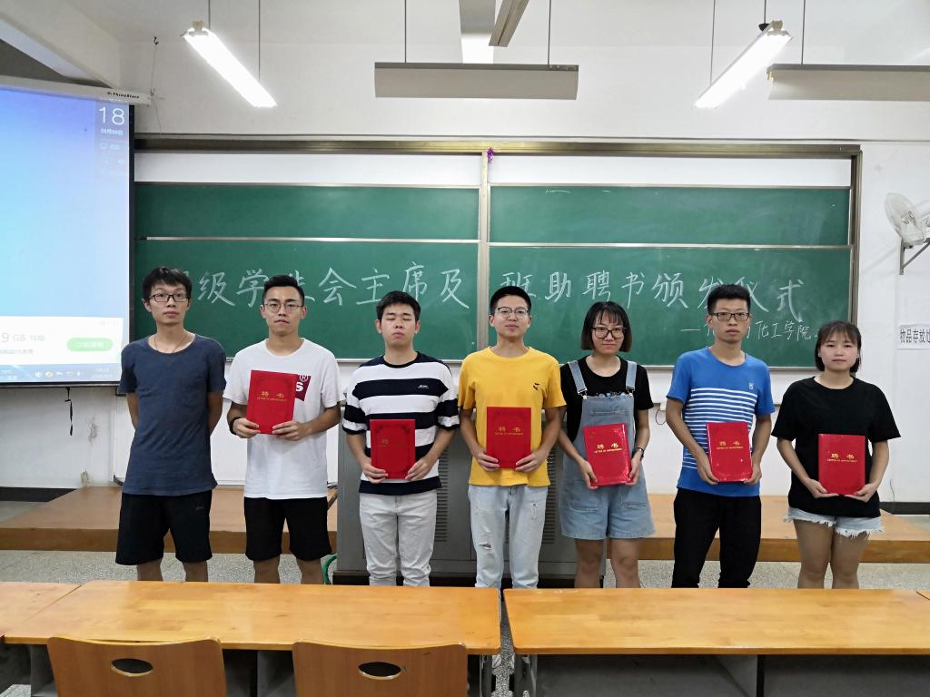 9月9日晚六点,化工学院于06-210进行了2017级学生会主席团及班主任助理聘书颁发仪式。学院团委书记谈鹏老师、17级班主任高超、熊俊老师出席此次活动。