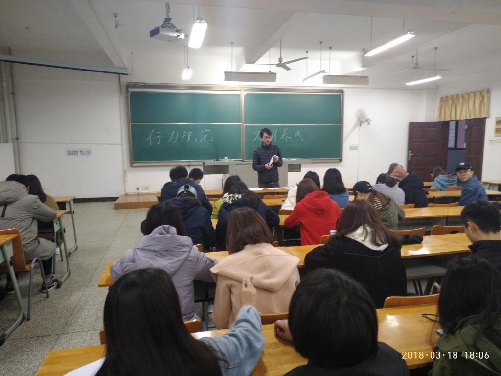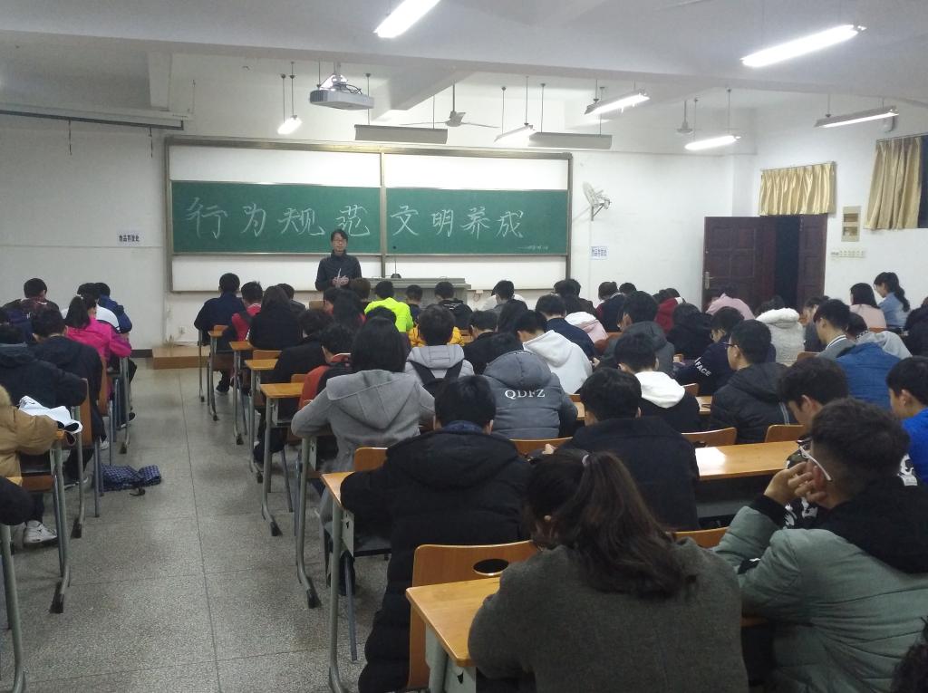 3月18日晚,化工学院各年级在理工楼召开“行为规范 文明养成”主题年级大会,教育引导广大学生注重行为规范,增强文明意识,养成文明行为习惯,提高文明素养。大会由各年级辅导员主持。