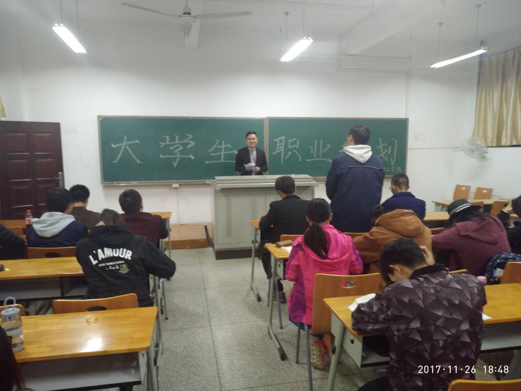 化工学院于2017年11月26号晚上在06-212举办了大学生职业规划讲座,由14届毕业生王军针对17级学生开展职业规划讲座。