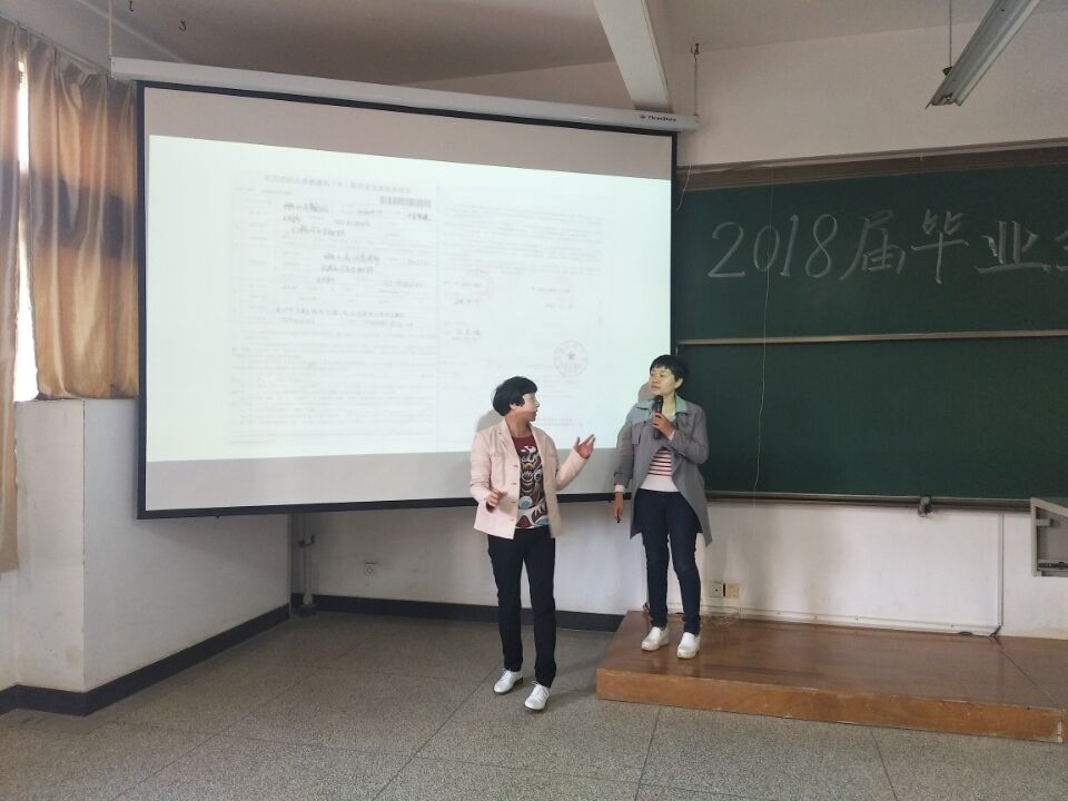 此次大会由化工学院凡蓉蓉副书记和毕业生辅导员胡子英老师主持。凡书记通过详细的PPT向大家介绍了创业就业和户口档案等相关问题。其中重点介绍了签订协议书的注意事项,并指出与公司签订协议时要慎重考虑,强调违约需要负法律责任。并且以往年案例给予建议和警示。凡书记还提醒大家一定要修满学分,保存好自己的毕业材料,最后预祝2018届毕业生一帆风顺,大展宏图。