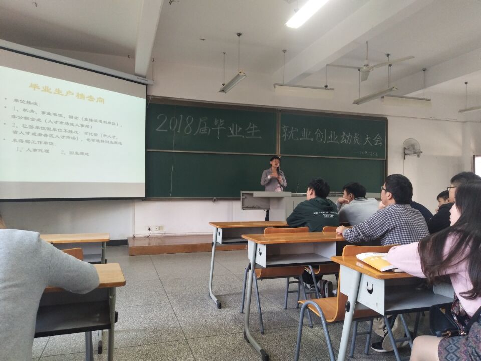 11月9日下午2点,化工学院于6栋教学楼211教室举办了2018届毕业生就业创业动员大会。针对2018届毕业生有关毕业准备和毕业后就业创业的问题,进行了较为全面的讲解。